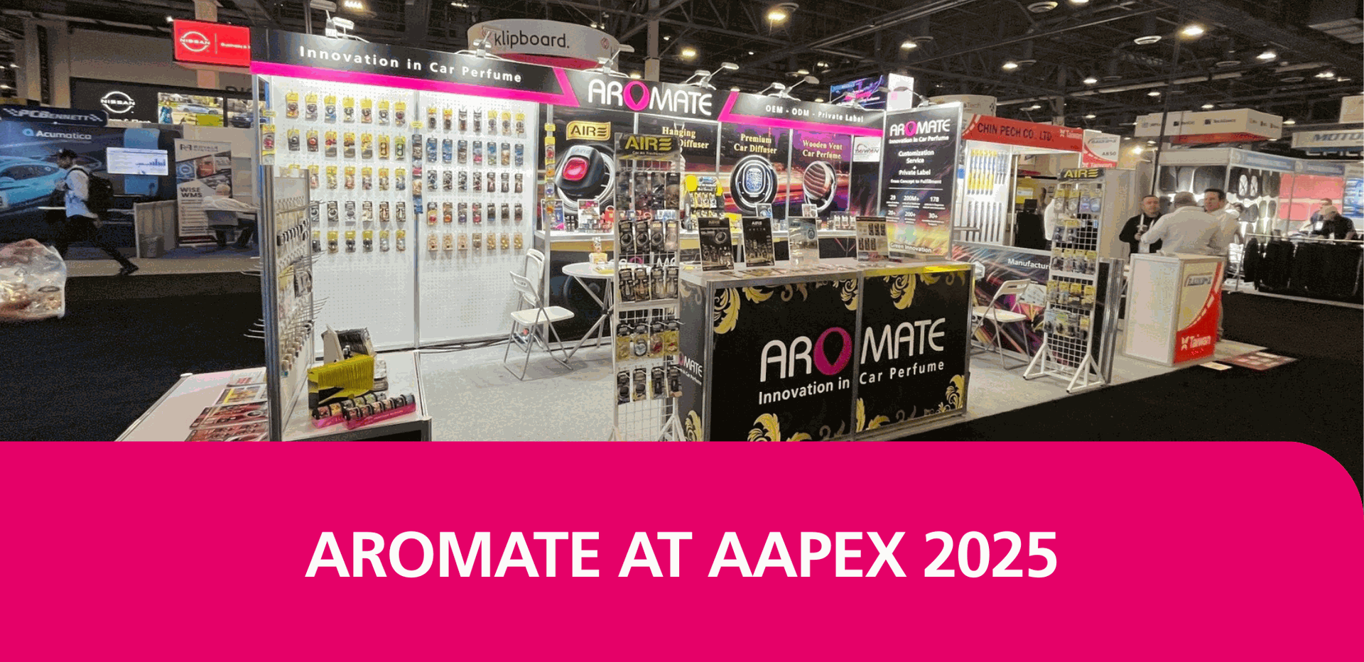 As one of the world’s largest automotive aftermarket exhibitions, AAPEX gathered thousands of global professionals, distributors, and OEM/ODM partners. For Aromate, the event was an opportunity to reaffirm its leadership in delivering fragrance innovation, design excellence, and global manufacturing reliability for the automotive and air care sectors.